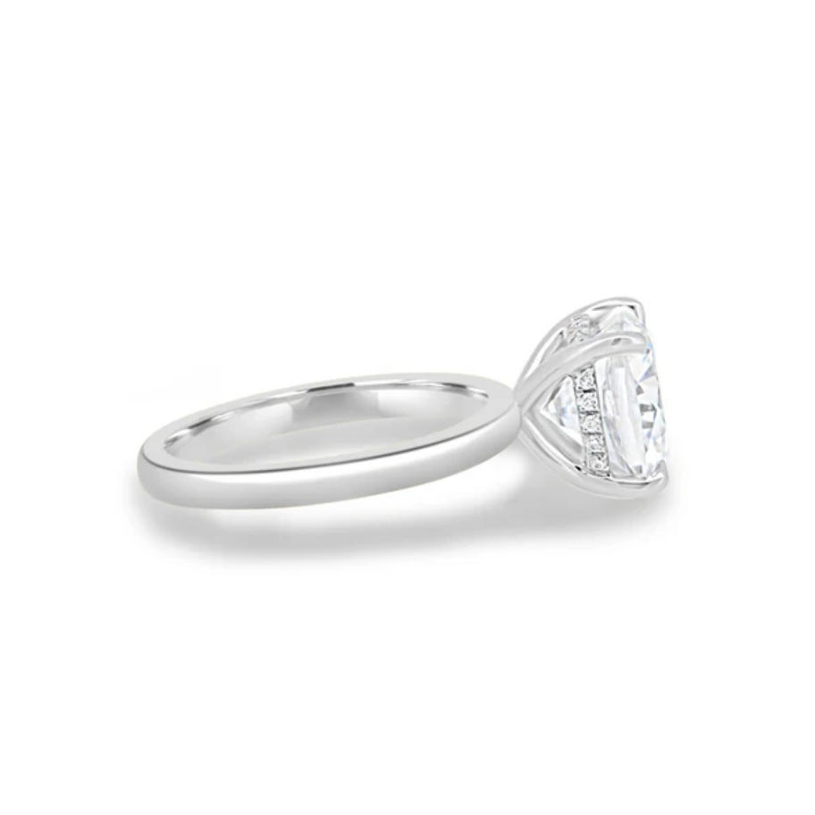 A timeless expression of refined simplicity, this ring showcases a 2.00ct Cushion lab-grown diamond E color, VVS2 clarity in an elegant solitaire setting. The plain shank and hidden halo highlight the beauty of the center stone, creating a sleek, modern silhouette perfect for everyday wear.