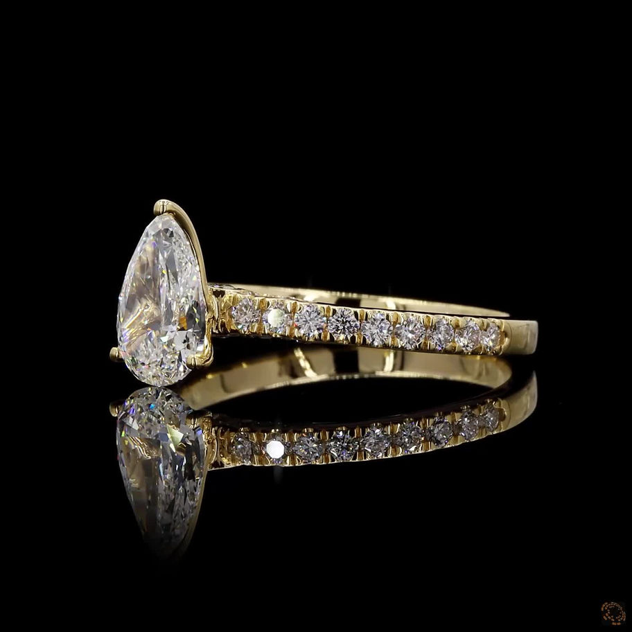 This elegant engagement ring features a stunning 1.00 carat pear-cut lab-grown diamond, graded VS1 clarity, E color, and Excellent cut, and IGI certified for exceptional quality and brilliance. The pear shape offers a graceful, elongated silhouette that flatters the finger while delivering beautiful sparkle and fire.